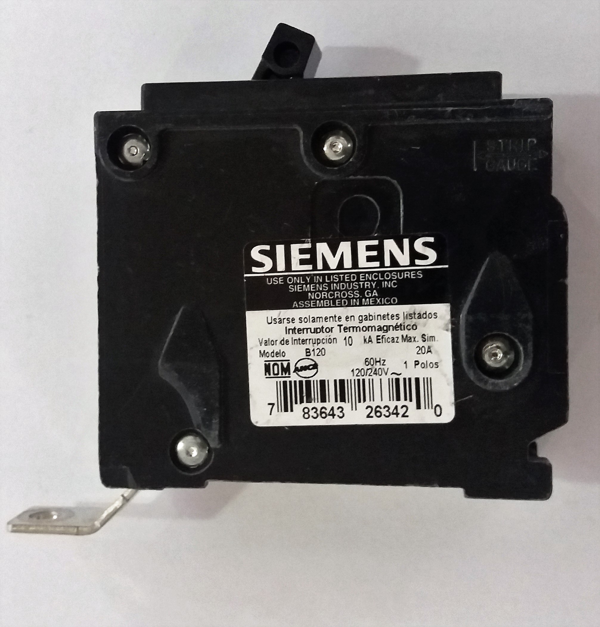 Interruptor termomagnético 1 polo 20 amperes 220V.